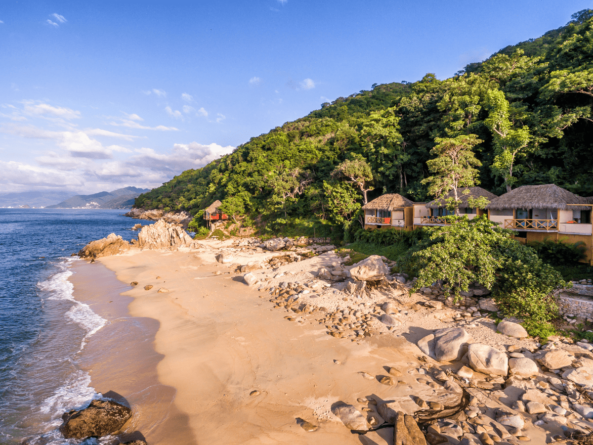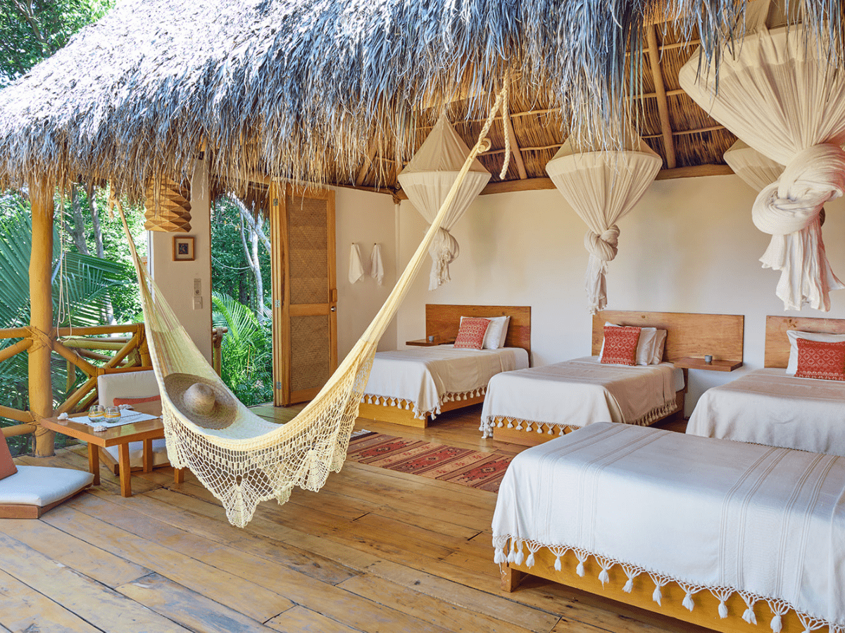 After landing, you’ll take a short taxi ride (arranged by Xinalani) to Puerto Mágico Marina, where you’ll board a boat to the retreat. The scenic ride takes about 45 minutes and brings you directly to Xinalani’s secluded beach.