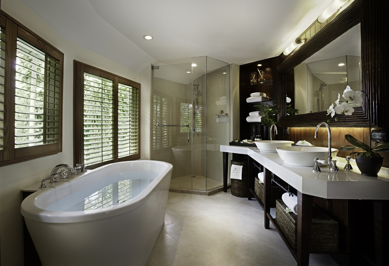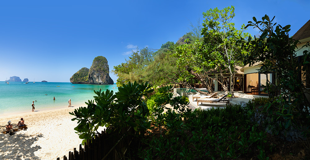 Week 1 (South) - Each two-story Deluxe Pavilion offers fully-equipped, spacious accommodation and stylish, tropical decor with polished wood, richly colored fabrics, and hand-crafted details throughout as well as an outdoor terrace with seating. The circular design of the pavilions blends perfectly with the resort's natural surroundings, echoing the rounded cliffs of the rock formations that characterize the area's unique landscape.